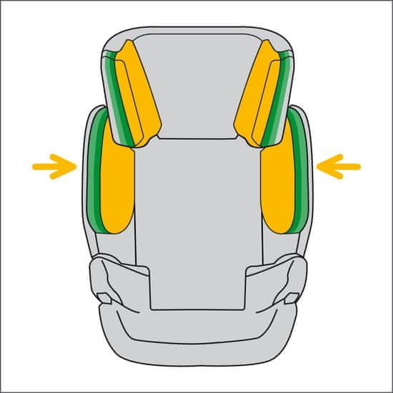 Đệm chắn an toàn: Khi sử dụng cho nhóm 1 (9-15 kg), ghế sử dụng đệm chắn an toàn có thể điều chỉnh, giúp giảm lực tác động trong trường hợp xảy ra va chạm.