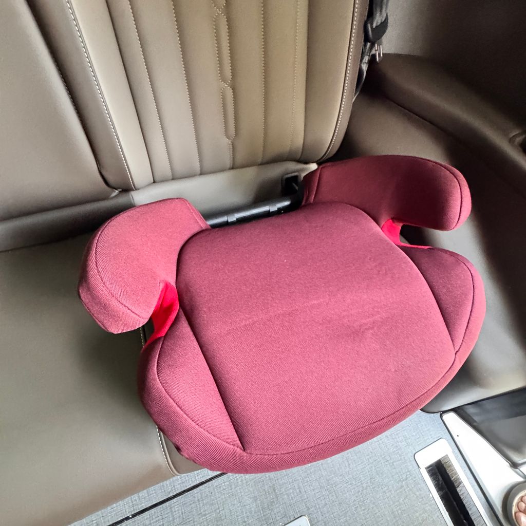 Tháo bàn an toàn, trẻ ngồi như ghế nâng tựa lưng tiêu chuẩn và dùng dây an toàn của xe.